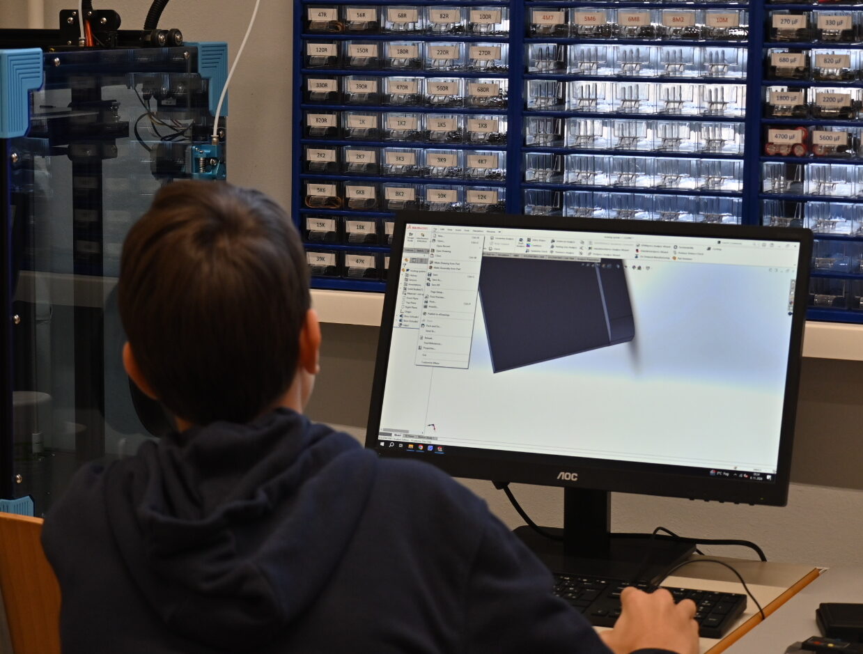 Naša ekipa 3D-oblikovalcev že zelo pridno dela in ustvarja ohišje za satelit. Zaradi njihovega hitrega in trdega dela že imamo natisnjen prvi osnovni prototip ohišja. Tako kot napreduje njihovo delo, napreduje tudi njihovo znanje za delo v programu Solidworks. Seveda bo doživel še veliko sprememb in prilagoditev ampak smo prepričani, da bo končni satelit zadostil pogojem tekmovanja.