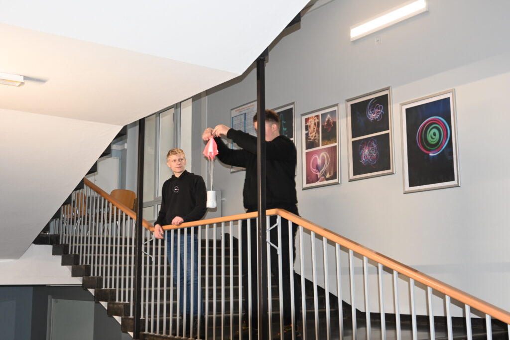 Naši fantje, ki so zadolženi za izdelavo padala, so po tednih srečevanj in razmišljanja uspešno končali z računanjem, izrezovanjem in šivanjem prvega modela padala. Sedaj pa so začeli s testiranjem padala. Upajmo da jim bo še naprej šlo tako dobro, da bo naš satelit pristal varno, ko ga bomo prvič spustili iz zraka proti zemlji. Potrebno bo še poiskati različne rešitve za nadalnje testiranje in preizkušanje drugih oblik padala.