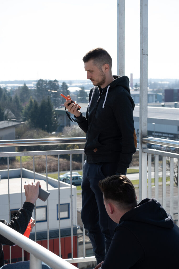 21.3, so se člani SAT skupaj z mentorjem odpravili na stolp Mariborske gasilske brigade, katerega so nam Mariborski gasilci z njihovim poveljnikom z veseljem omogčili uporabljati.