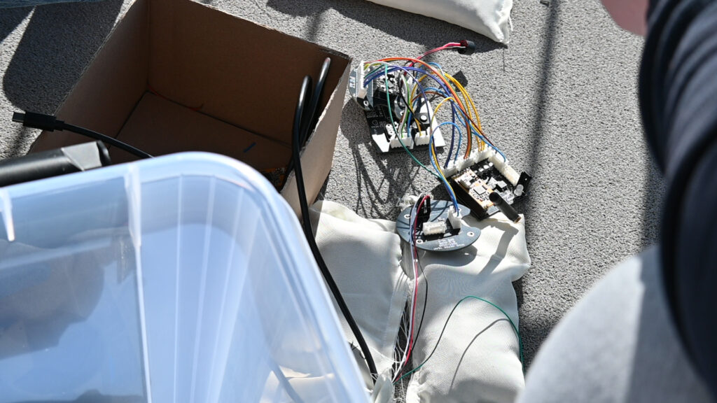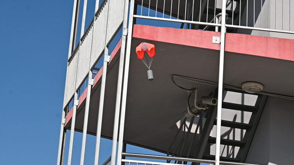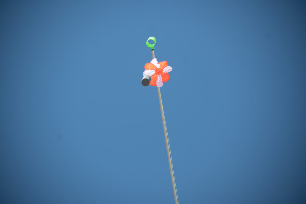 Teste smo opravljali tako, da smo na ohišje privili pokrov s padalom, katerega smo nato vstavili v tubo z zatičem, katerega smo izvlekli, da je bil sprožen izmet satelita. Ta dan, smo testirali 3 vrste padala: križno, okroglo in ploščato ki so imela vsak po dve verziji. Ohišja in padala smo testirali z utežmi in brez uteži. Uteži smo uporabili zato, da smo simulirali težo satelita, ki bo uporabljen na tekmovanju. Saj prvo ohišje spusta z utežjo ni preživelo, smo vse potrebne meritve najprej opravili brez uteži. Ko smo dobili vse želene meritve za naša padala, smo spustili vsa ohišja še z utežmi.